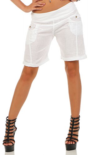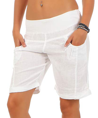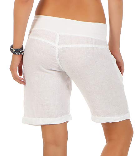 Malito Pantalón Cortos de Tela de Lino Pantalón 3001 Mujer (L, Blanco)