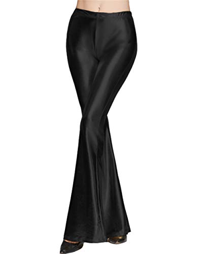 Bamans Pantalones Elegantes Push up Mujer, Acampanado Elásticos Pantalón Cintura Alta Largos Straigth Pantalones para Yoga, Oficina, Casual (Negro, Large)