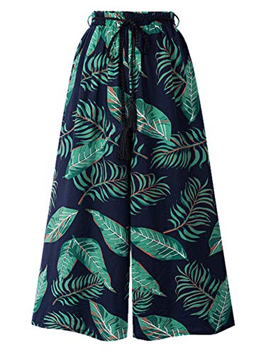 Mujeres Verano Pantalones Pantalones Largos Pierna Ancha Hojas Impresión Cintura Alta Suelto Delgado Casual Mujeres Azul Verde XXL