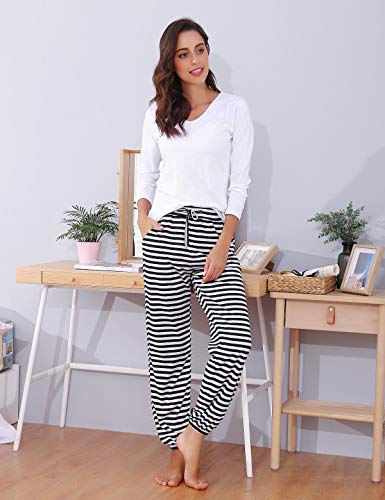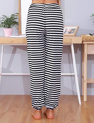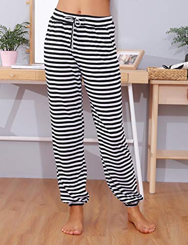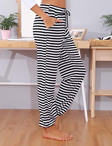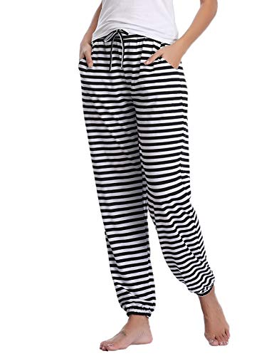 Abollria Pantalones de Pijama Mujer Largos de Suave,Comodo y Moderno,Pantalones Deportivos Casuales Lineas Blancas y Negras,S