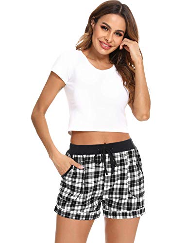 - 【Excelente diseño】Diseño clásico a cuadros, elegante y fresco.Diseño de cordón en los pantalones, ajuste elástico y flexible, mejora la comodidad.Diseño de bolsillo lateral. Los bolsillos laterales son más convenientes.