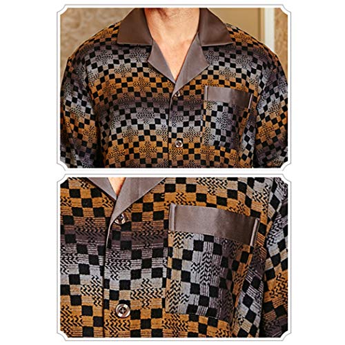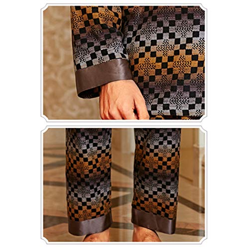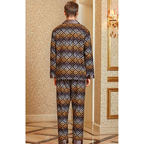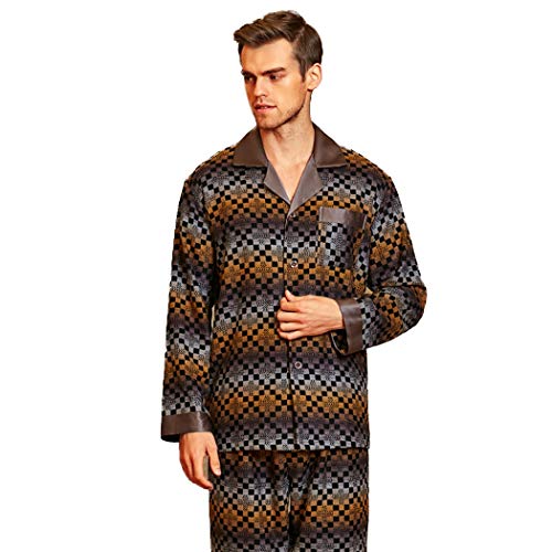 AXIANQIPJS Hombres Camiseta De Manga Larga Ropa De Dormir Conjunto De Pijama 100% Seda De Mora Ligeros Pantalones Espesados Cepillado Calentar Loungewear (Color : Brown, Size : XL)