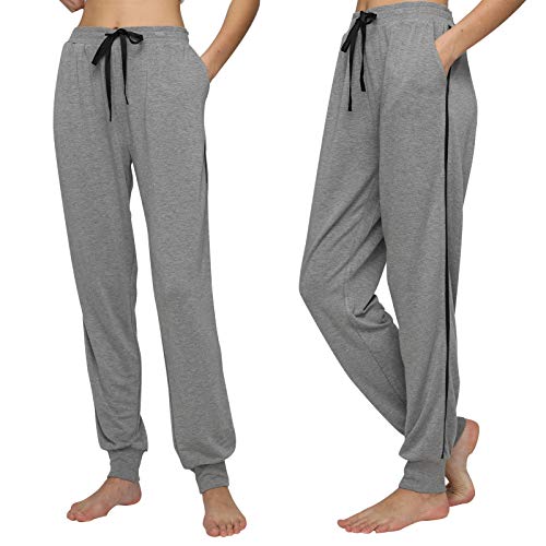 Mnemo - Pantalones de dormir para mujer, con bolsillos y cinta cómoda, para el tiempo libre gris mezclado L
