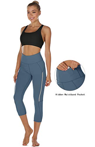 icyzone Mallas pirata de deporte para mujer, para yoga, fitness, talle alto, pantalones de chándal Dusty Blue XL