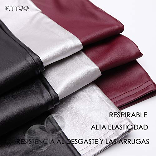 FITTOO PU Leggings Cuero Imitación Pantalón Elásticos Cintura Alta Push Up para Mujer #1 Bolsillo Falso Poca Terciopelo Negro XL