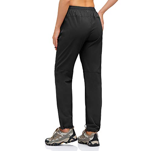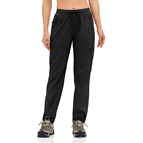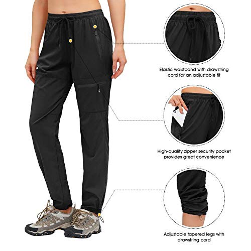 HMIYA Pantalones Trekking Mujer Pantalón de Senderismo Ligeros Secado Rápido Protección UV con Bolsillos Cremallera(Negro,L)