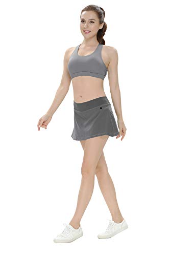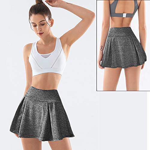 BEIFON Falda Pantalón Deportiva de Tenis Falda Deportiva para Mujer Elástica Transpirable Falda Deportiva Pantalones Cortos Incorporados Skorts de Golf Pilates Fitness Correr Deporte Tenis (Gris, M)