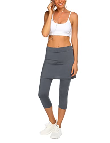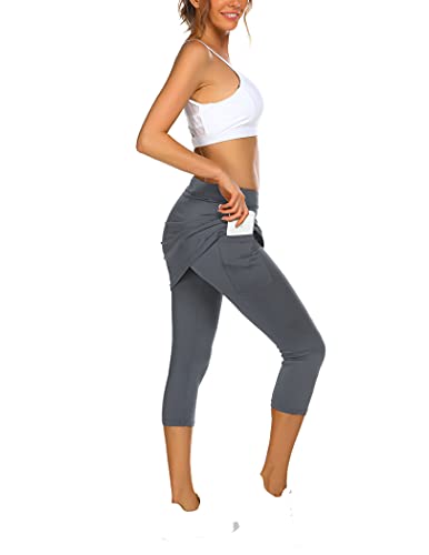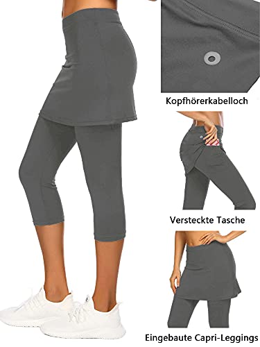 Balancora Falda de deporte para mujer, falda de tenis, hockey, ajustada, 3/4, pantalones de yoga con bolsillos y conexión para auriculares gris XXL