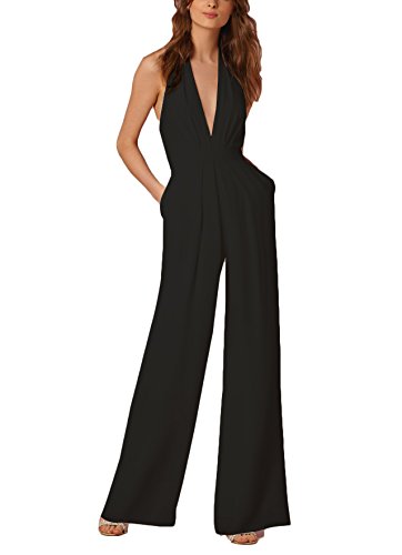 - Monos De Vestir Mujer Fiesta Largos Pantalones Anchos Elegantes Sin Mangas V Cuello Hombro Descubierto Espalda Descubierta Moda Coctel Fiesta Mono Largo Jumpsuits