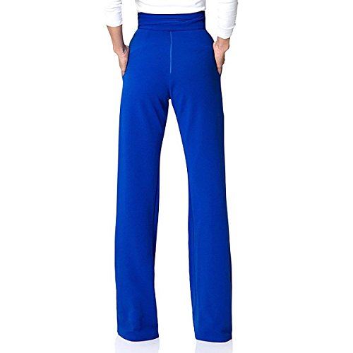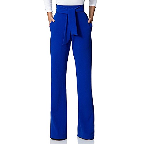 Pantalones Mujer Elegante Fiesta Moda Pantalones Anchos Largos Unicolor Anchos Fashion Pantalones De Tiempo Libre Pantalones De Traje Bastante con Cordón (Color : Blau, Size : L)