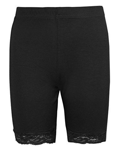 Pantalones cortos de ciclista para niña con encaje para ejercicios, ballet, estiramientos, atletismo Negro negro 7-8 Años