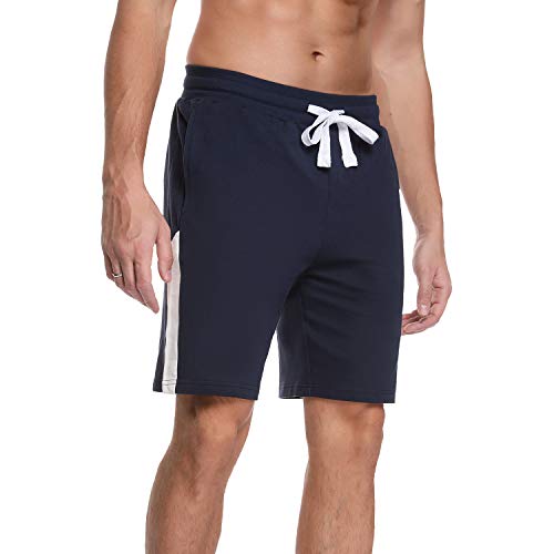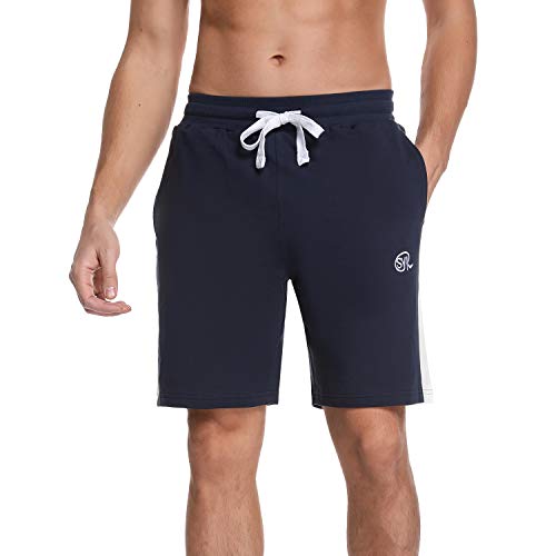 Sykooria Shorts Deportivos para Hombre 100% Algodón Ligero Transpirable Corto con Rayas Blancas Pantalones de Pijama Pantalones Cortos de Secado Rápido para Baloncesto Jogging, Gimnasio y Compras