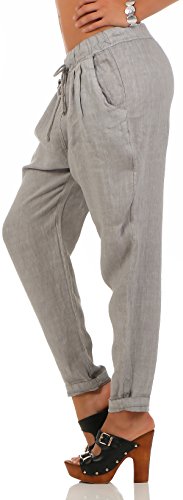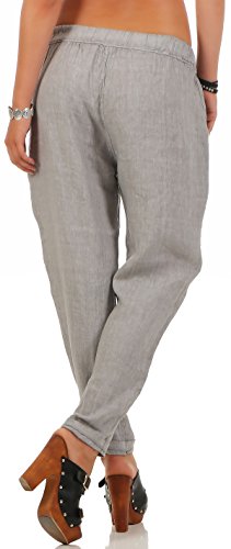 Malito Ocio Pantalones de Lino con Cintura Elástica 6816 Mujer (L, Gris Claro)