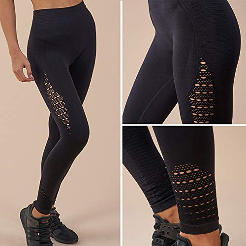 FITTOO Leggings Sin Costuras Corte de Malla Mujer Pantalon Deportivo Alta Cintura Yoga Elásticos Fitness Seamless #1 Negro Large