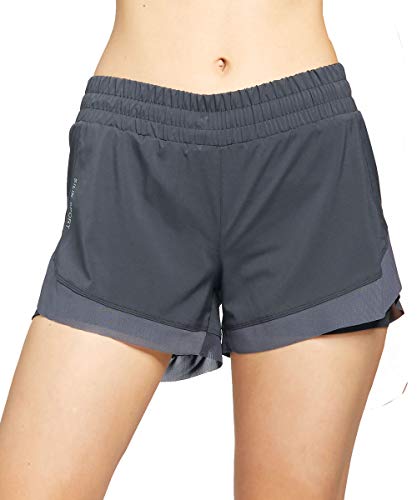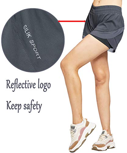 SILIK Pantalones cortos 2 en 1 para correr, deportes, correr, gimnasio, con bolsillos, Mujer, negro, S