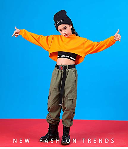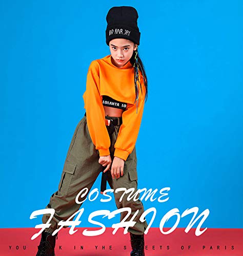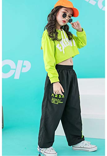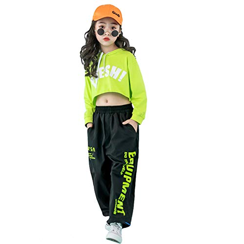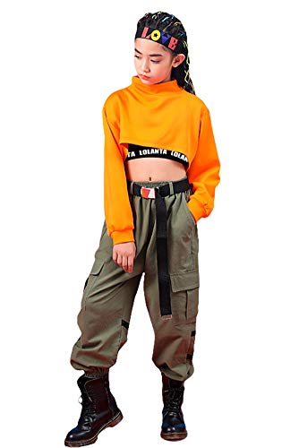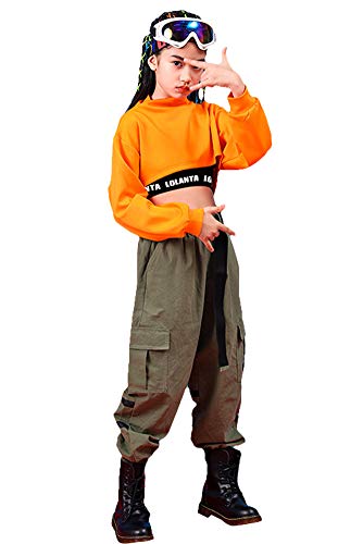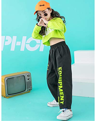 LOLANTA 2 Piezas de Ropa de Baile Callejero para niña Hip Hop, Sudadera Corta + Pantalones de chándal