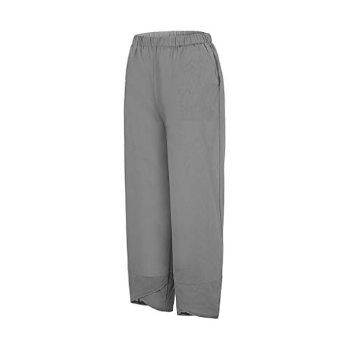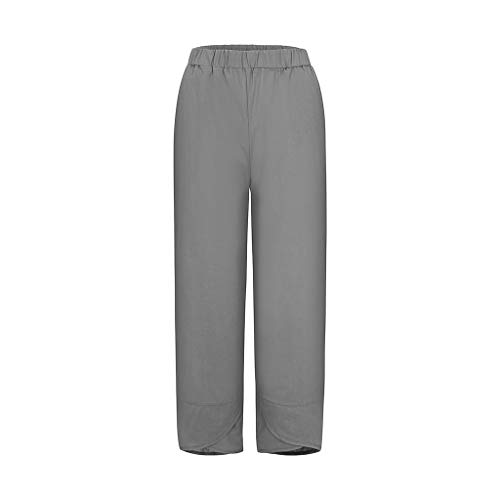 Abollria Pantalones de Algodón y Lino para Mujer Sueltos Pantalones de Pierna Ancha Verano Pantalón Anchos Pants Pantalones de Palazzo con Cordón