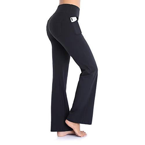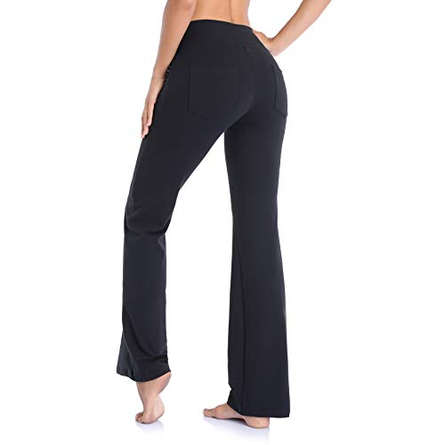 Vimbloom Pantalones de Yoga Bootcut para Mujer Largo Pata Anchos Pantalón de Piltes Cintura Alta Deportivos Leggins con Bolsillos para Yoga Fitness VI490 (Negro, S)