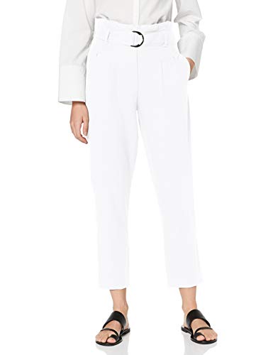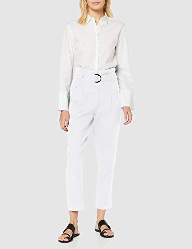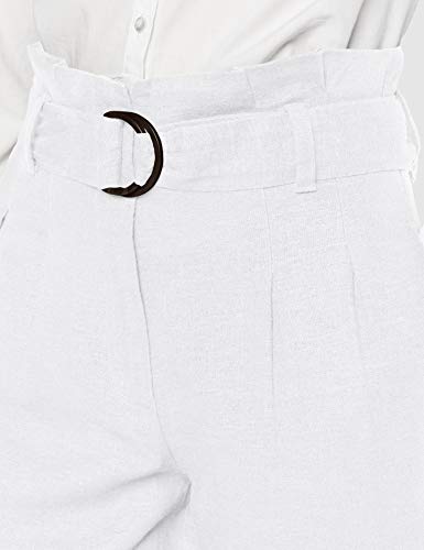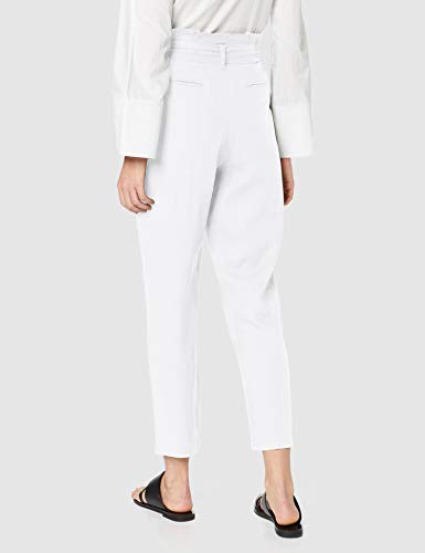 Marca Amazon - find. Pantalón con Cintura de Fuelle de Lino Mujer, Blanco (White), 42, Label: L