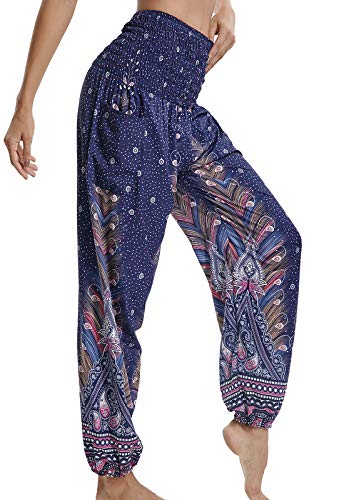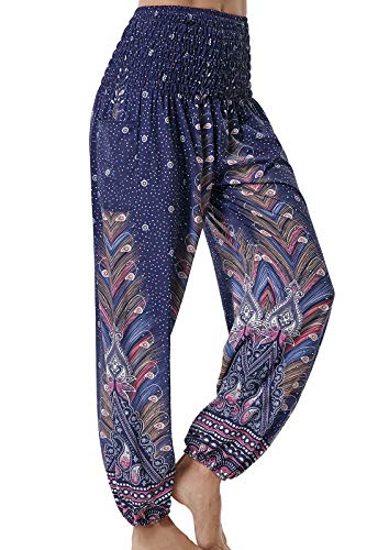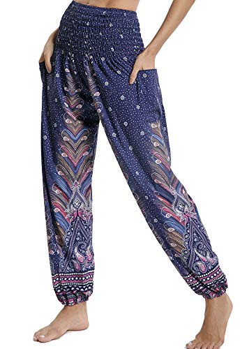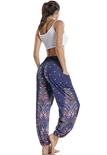 Pantalones de Yoga Mujer Harem Boho del Lazo del Pavo Real Flaral Funky #2 Flor Impresa-#2 Flor Impresa-C