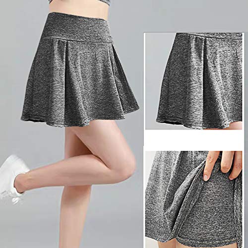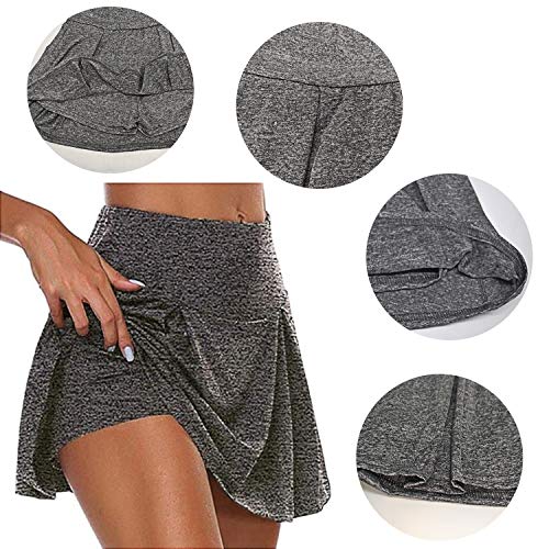 BEIFON Falda Pantalón Deportiva de Tenis 2 En 1 Falda Deportiva para Mujer Elástica Transpirable Falda Deportiva Pantalones Cortos Incorporados Skorts de Golf Pilates Fitness Correr Deporte (Gris, L)