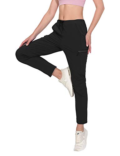 Little Donkey Andy Pantalones de tobillo ligeros de secado rápido para mujer, con cordón, para viajes, senderismo, L, A1. Negro.