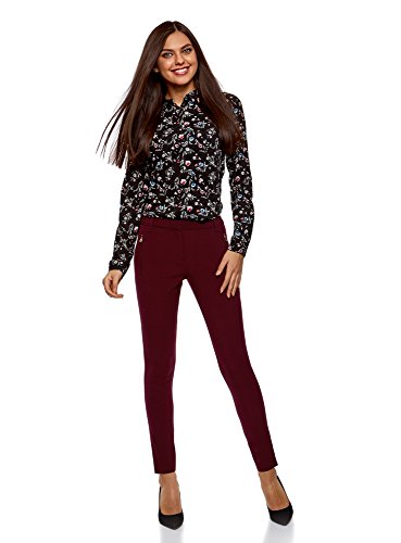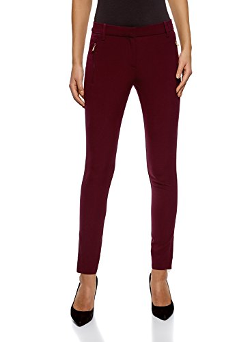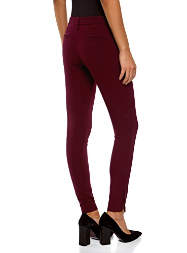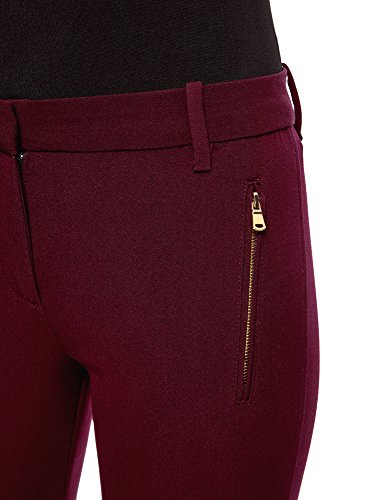 oodji Collection Mujer Pantalones Ajustados con Cremallera, Rojo, ES 40 / M