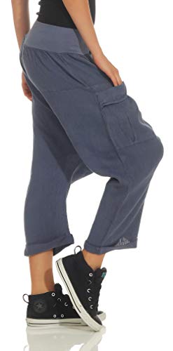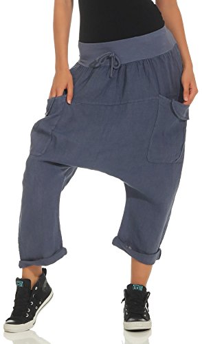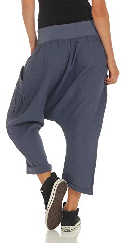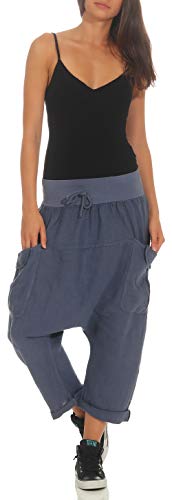 Malito Mujer Harem Pantalones Lino Pantalones Bloomers Capri Colores Lisos 6285 (BLU)