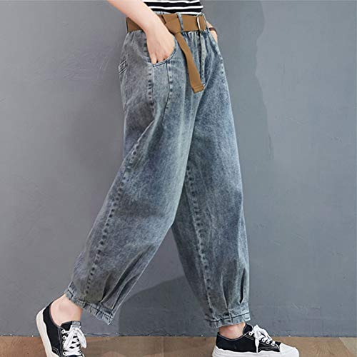 Pantalones Harem de Mezclilla para Mujer, Pantalones Vaqueros Vintage con Cintura elástica, Pantalones Casuales Sueltos con piernas Anchas, Ropa Salvaje Resistente a la decoloración