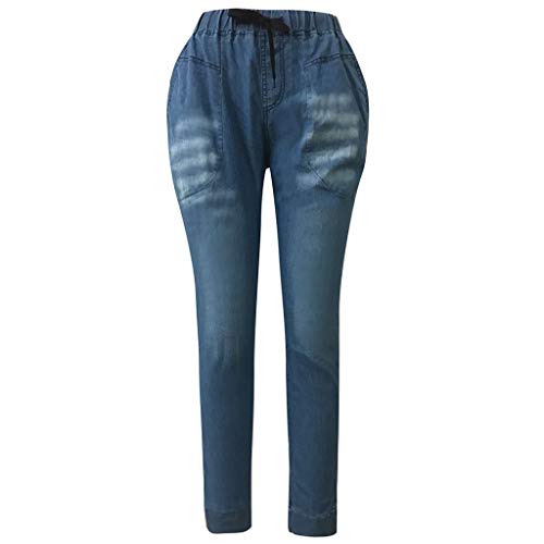 hibasing Pantalones Boyfriend de Mezclilla con Cintura elástica Estilo Jeans para Mujer Talla Grande Harlan