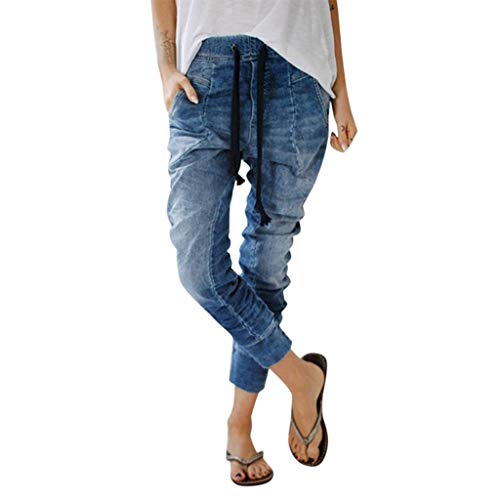 Vectry Mujers Drawstring Jeans Bolsillos Casual Denim Baggy Harem Pantalones Distress Pantalones Leggings Mujeres Pantalones Pierna Ancha Pantalones Pantalones Vaqueros Mujer