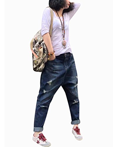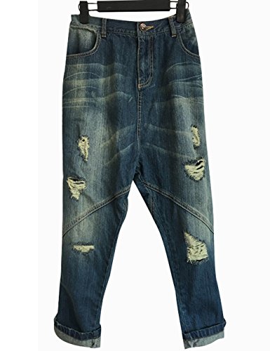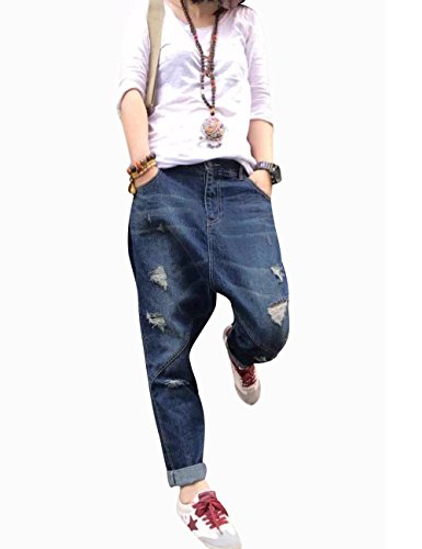 Youlee Mujeres Pantalones Harem Pantalones Vaqueros Rotos con Bolsillos