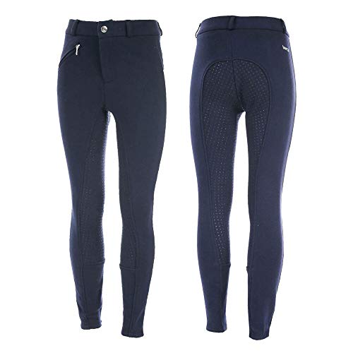 HORZE Pantalones de Montar para niños Active con Asiento Completo de Silicona, Bolsillos con Cremallera y bajo elástico, Todas Las Tallas, Azul, 170