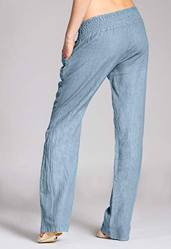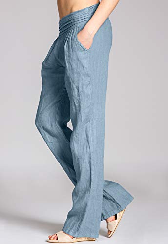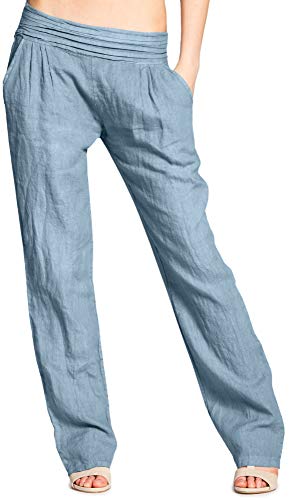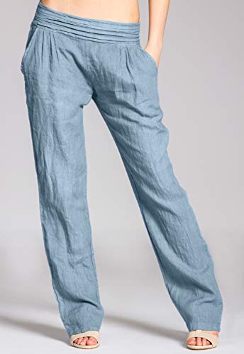 Caspar KHS020 Pantalones Largos de Verano para Mujer Hecho de Lino, Color:Azul Vaquero, Talla:3XL - DE46 UK18 IT50 ES48 US16