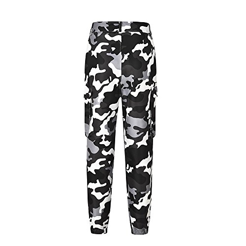 Pantalones Militares Mujer Cintura Alta Pantalon de Camuflaje de Chándal Hip Hop Punk Rock Casuales Tumblr Streetwear Sin cinturón Moda 2019 Yvelands(Blanco,M)
