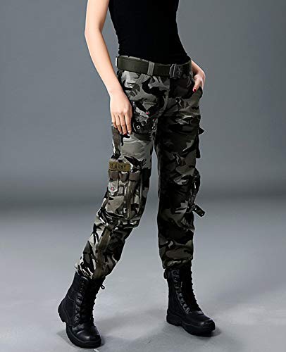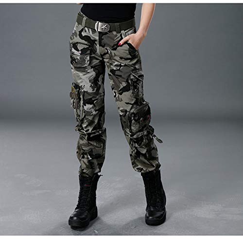 TRGPSG Pantalones Cargo Casuales de algodón para Mujer, Pantalones de Camuflaje para Trekking y Combate al Aire Libre, Pantalones de Trabajo tácticos Militares con múltiples Bolsillos
