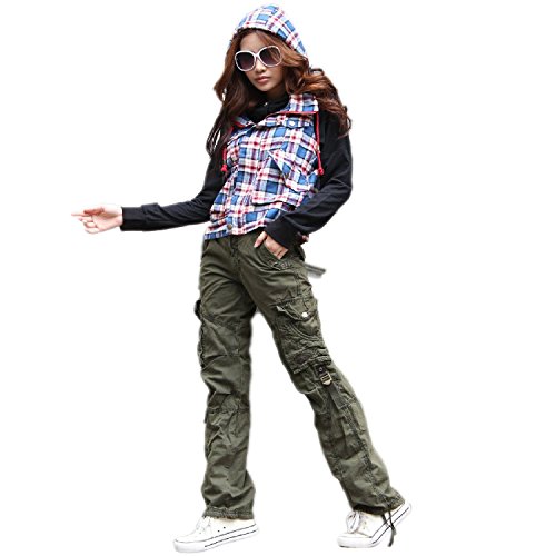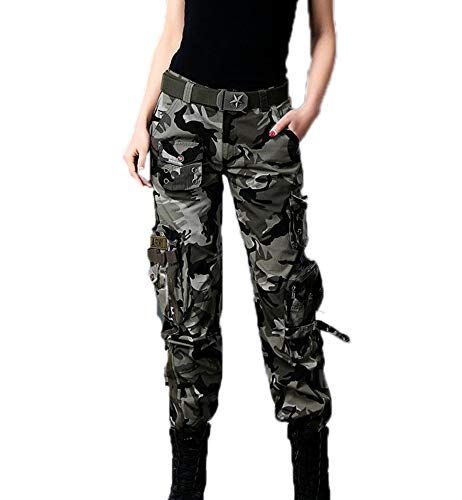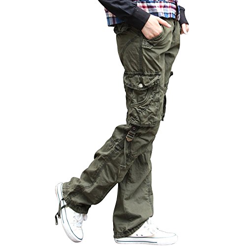 DMDMJY Pantalones De Camuflaje Cargo Ocasional De Las Mujeres Suelta Corte Recto Pantalones De Trabajo Militares,Armygreen,30