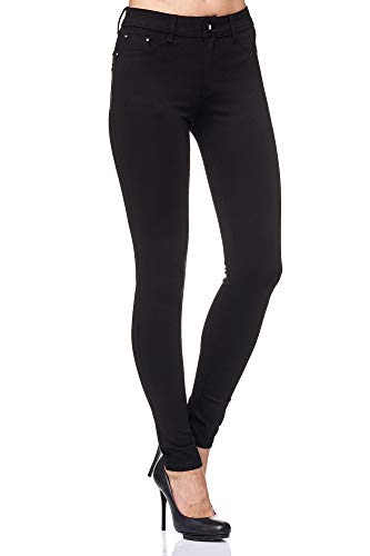 Elara Pantalón Elástico de Mujer Skinny Fit Jegging Chunkyrayan Negro H01 Black 50 (5XL)
