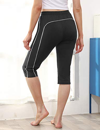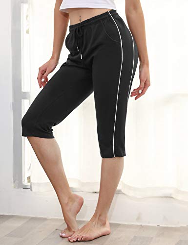 Doaraha 3/4 Pantalones Deporte para Mujer Pantalon Piratas Casual Pantalones Capri con Cordón para Correr,Yoga,Dormido,Aptitud,Danza(Negro,Tallas Grandes)