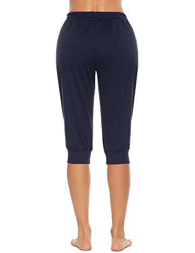 - 【Tejido cómodo y transpirable】Pantalones capri para mujer hechos de 100% algodón, también pueden absorber el sudor perfectamente, muy cómodos de usar para correr, hacer ejercicio, dormir, yoga, baile, ocio, actividades deportivas en verano.