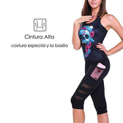 FITTOO Mallas 3/4 Leggings Mujer Pantalones de Yoga Alta Cintura Elásticos y Transpirables Malla M