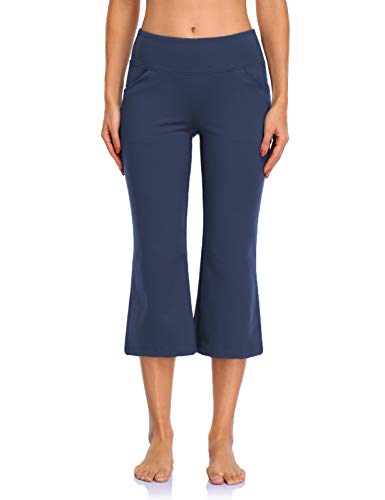 MOVE BEYOND Pantalones Piratas Capris de Yoga para Mujer de con 4 Bolsillos Pantalón de Pilates de Cintura Alta Yoga Gimnasio Running Training, Azul, L