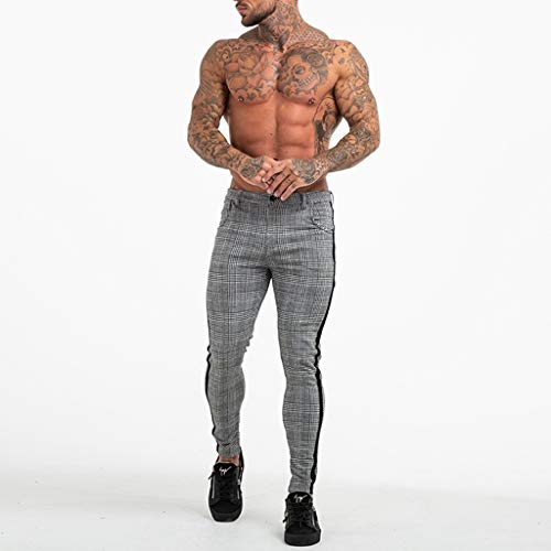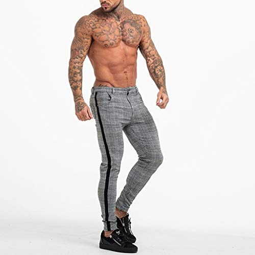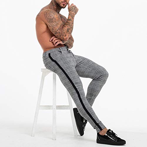 Pantalones de Hombre Casuales Deporte Pantalón De Chándal Jogger Impresión a Cuadros Cintura Flexible Pantalones Largos con Efecto Lavado y cómodo para Hombre riou