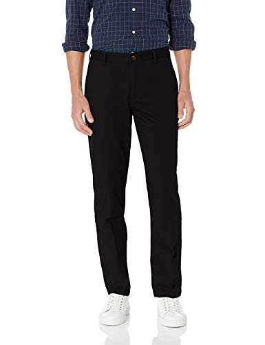 Amazon Essentials – Pantalón chino sin pinzas en la parte delantera, resistente a las arrugas, de corte recto para hombre, Negro (True Black), 30W x 28L