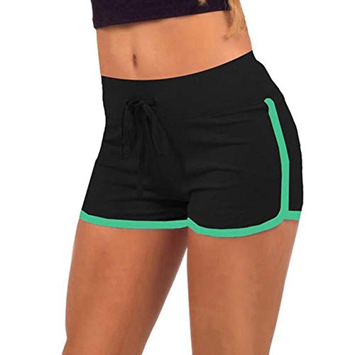 HSY Summer - Pantalones cortos de deporte para mujer, de algodón, con cordón, cintura elástica, pantalones cortos de entrenamiento, cintura ajustada Color negro y verde. S
