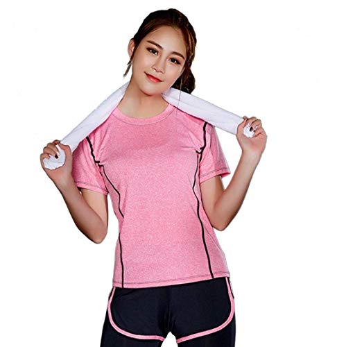 Conjunto Corto 2 Piezas de Deportes de Tenis, Mujer Ropa Deportiva Camiseta Casual Camiseta + Pantalones Cortos Gym Yoga Workout Cintura Ropa Deportiva Conjunto de Ropa Deportiva (L, Rosa)