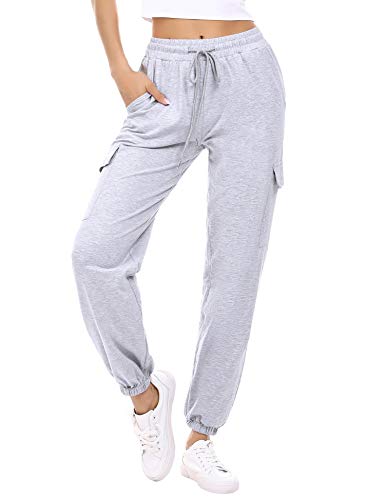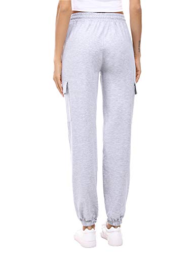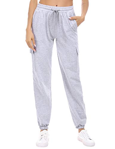 Doaraha Pantalones Deportivos Mujer Algodón Pantalón de Chándal Largo Elásticos Transpirables con Bolsillos Laterales para Deporte Gimnasio Fitness Correr (Gris Claro, L)