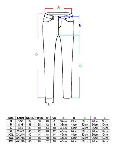 - Pantalones vaqueros para mujer disponibles en 36/S, 38/M, 40/L, 42/XL, 44/XXL, 46/3XL, 48/4XL.