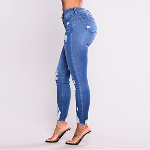 KJMAO Pantalones Vaqueros para Mujer con Agujeros Ajustados para Mujer Azul Azul XXL