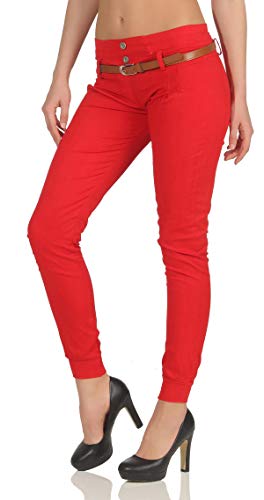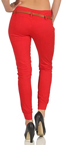 Malito 5396 - Pantalones chinos para mujer, con cinturón, pantalones de tela con elástico, estilo informal rojo L